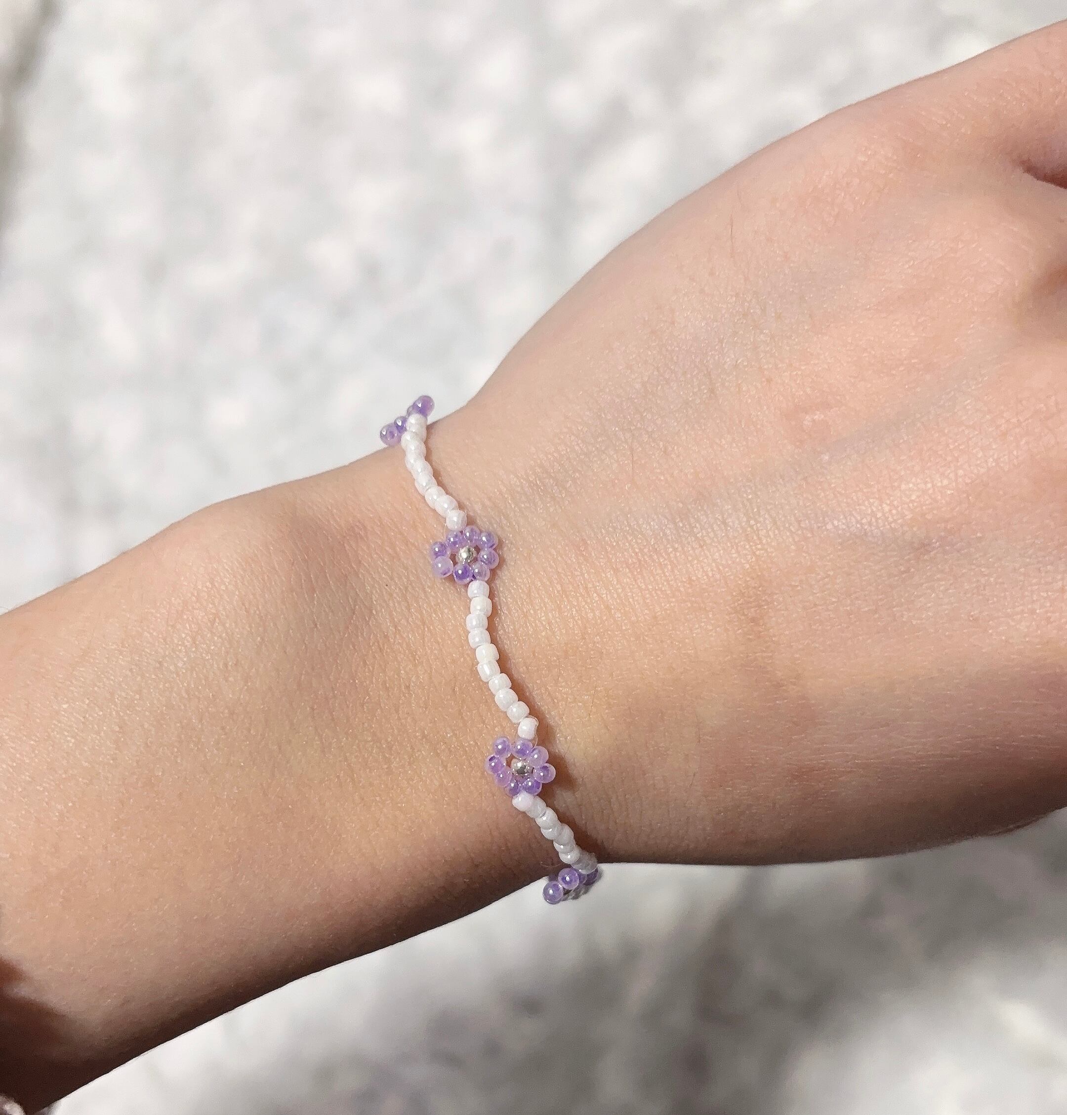 紫のお花のブレスレットで可愛い感じに作ってみました♪